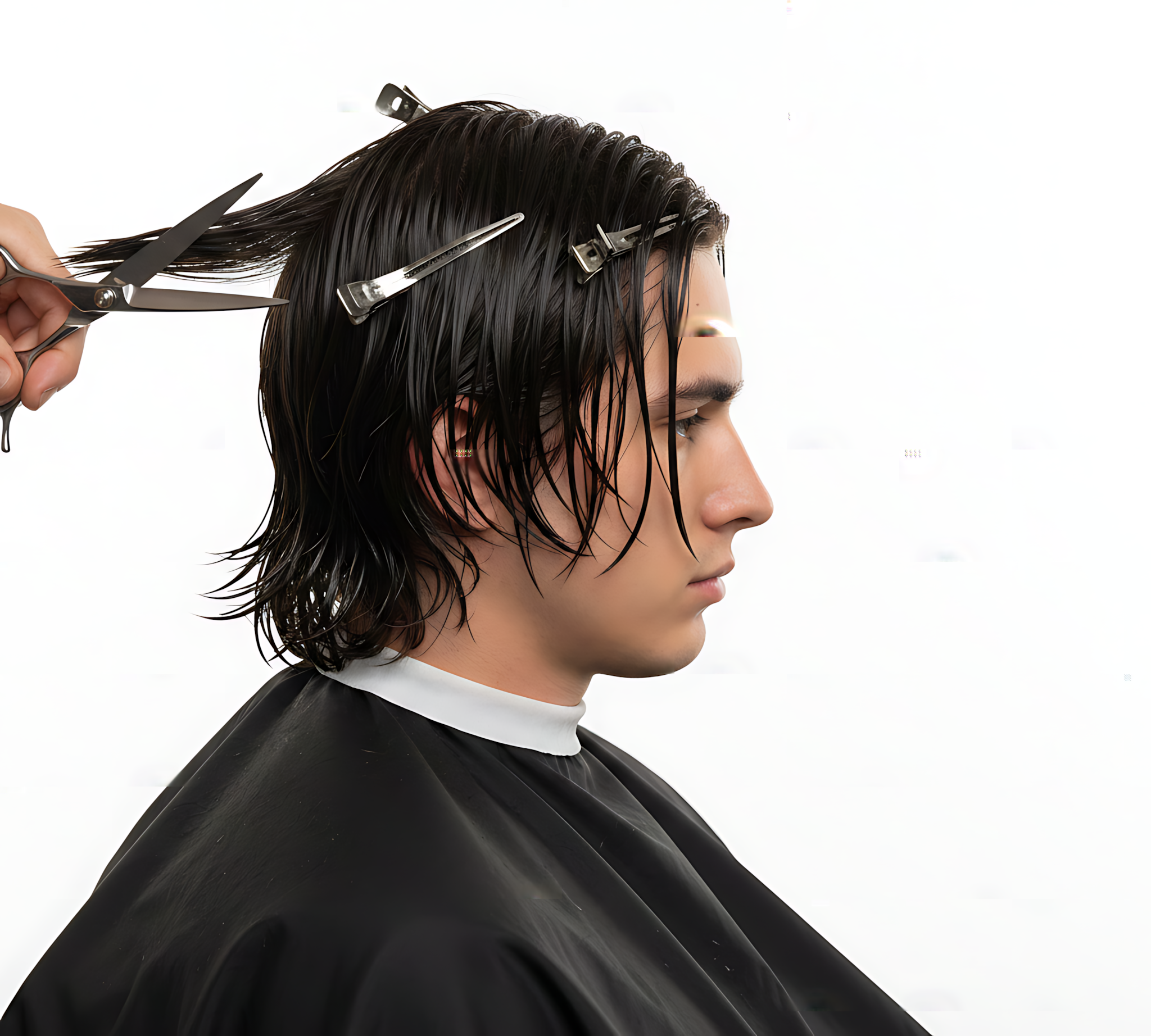 “Coupe aux ciseaux précise et élégante, adaptée à votre style et votre visage.”